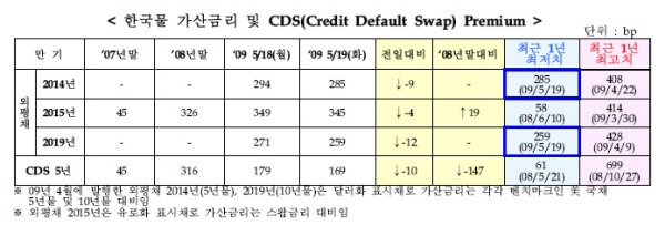 한국물 가산금리 및 CDS프리미엄(5월21일)