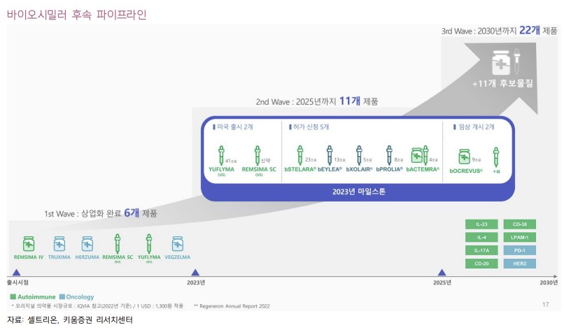 키움증권은 8일 셀트리온에 대해 3분기 실적은 고수익 제품인 램시마SC와 유플라이마 출하로 시장 기대치를 웃돌았고, 주가가 주식매수청구권 가격보다 높아 이대로 유지된다면, 무난히 합병에 성공할 것이라며 투자의견 매수와 목표주가 19만 원을 유지했다. 전 거래일 기준 현재 주가는 15만5600원이다.