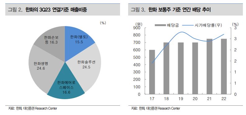 양 연구원은 “한화의 올해 연결 실적은 시장 컨센서스를 크게 하회하는 부진한 실적을 시현했다”며 “금융부문에서 공정가치 측정 금융자산 평가이익 감소, 연결자회사인 한화솔루션의 실적 부진, 별도 수익성 악화 때문”이라고 했다.