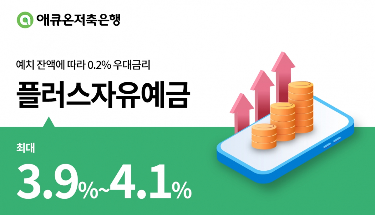 애큐온저축은행의 '플러스자유예금'이 최대 4.1%의 금리 혜택을 제공한다고 17일 밝혔다.