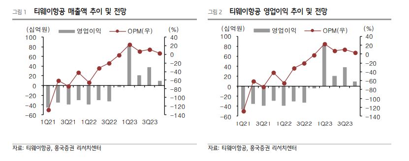 이 연구원은 “내년 티웨이항공의 영업이익은 617억 원을 기록할 전망”이라며 “유가와 환율 하락으로 유류비 부담은 완화될 것이나, 사업량 증가에 따라 인건비와 조업비 등이 증가하면서 전체 비용은 올해와 유사할 것”이라고 했다.