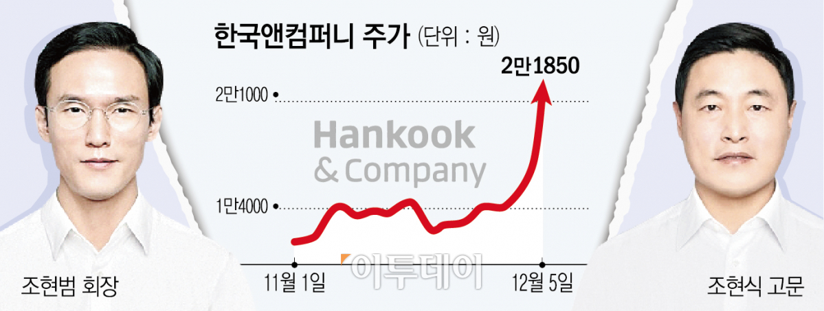조 고문과 MBK파트너스가 제시한 공개 매수 가격은 전일 종가 1만6820원에 18.9%의 프리미엄을 더한 주당 2만 원이다. 그런데 이날 한국앤컴퍼니 주가는 상한가를 기록해 2만1850원으로 마감됐다. 공개 매수가 원활하게 진행되지 않을 가능성이 크다.