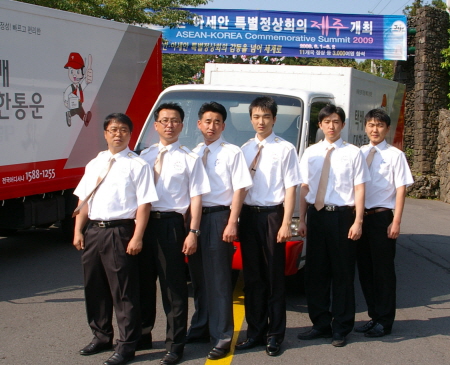 대한통운이 내달 1일부터 2일까지 제주에서 열리는 한아세안 특별정상회의의 전담택배사로 선정됐다. 화물배송을 맡은 대한통운 택배사원들은 지정유니폼을 착용한다.
