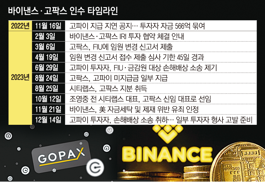 고파이 투자자들은 금융당국이 법적 근거 없이 바이낸스의 인수 및 국내 진출을 막고 있다고 주장한다. 대주주인 바이낸스와 미국 규제 당국 간의 법률문제는 현행 특정금융정보법상 변경 신고 불수리 사유에 해당하지 않는다는 주장이다. 손해배상 소송을 담당했던 재판부 역시 이러한 시각을 공유했다는 게 투자자들의 설명이다.