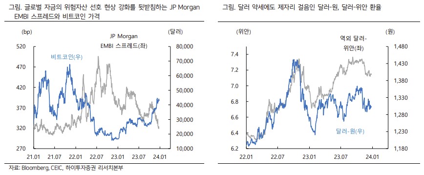 박상현 하이투자증권 연구원은 "일본은행의 정책 피봇 기대감이 유지되고 있지만 엔화는 당분간 140엔 초·중반대 등락을 보일 것으로 예상된다. 위안화 역시 강세 재료 부재로 약보합세를 전망한다"며 "원·달러 환율은 달러 약세로 1290원대 수준에서 연말 종가를 기록할 것으로 보이지만 하락폭은 제한적일 것"이라고 덧붙였다.