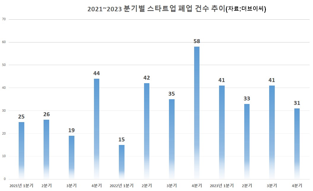 다만 2022년 폐업 건수가 150개로 전년 대비 31.6% 급증했던 것을 고려하면 적다고 할 수 없는 수치다. 투자시장이 얼어붙기 이전인 2021년 폐업 건수는 114개로 이와 비교하면 28.1% 늘어난 셈이다.