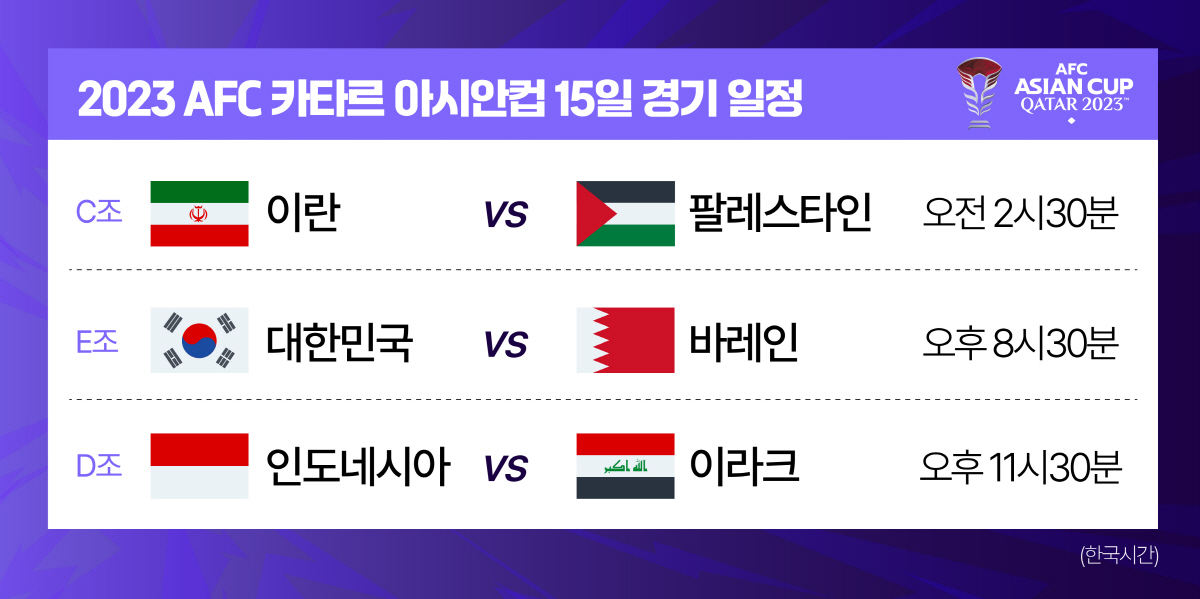 2023 AFC 아시안컵, 오늘(15일)의 경기 일정 [아시안컵]