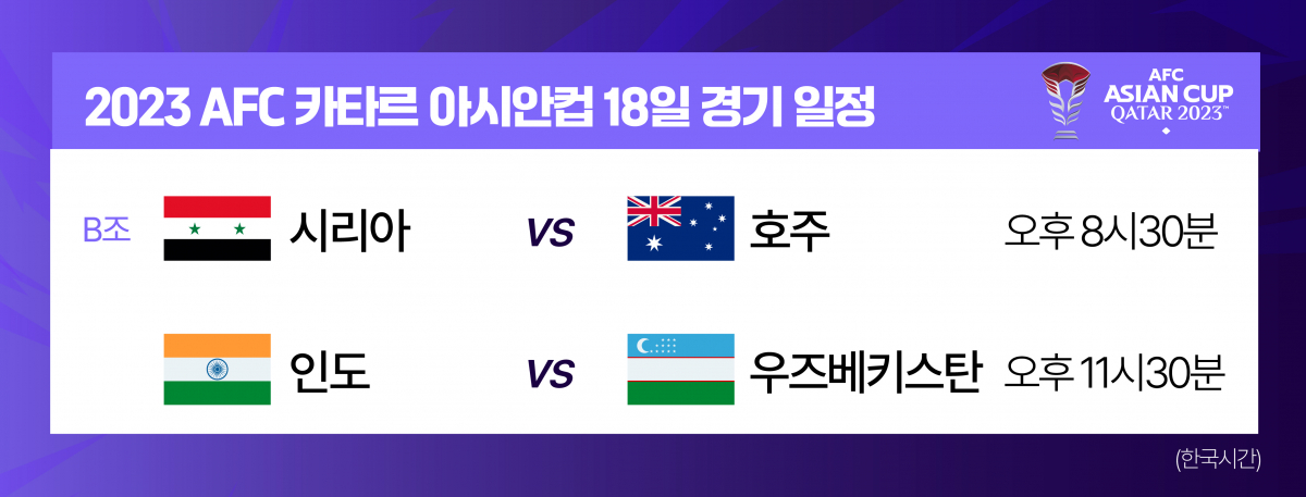 2023 AFC 아시안컵 오늘(18일)의 경기 일정