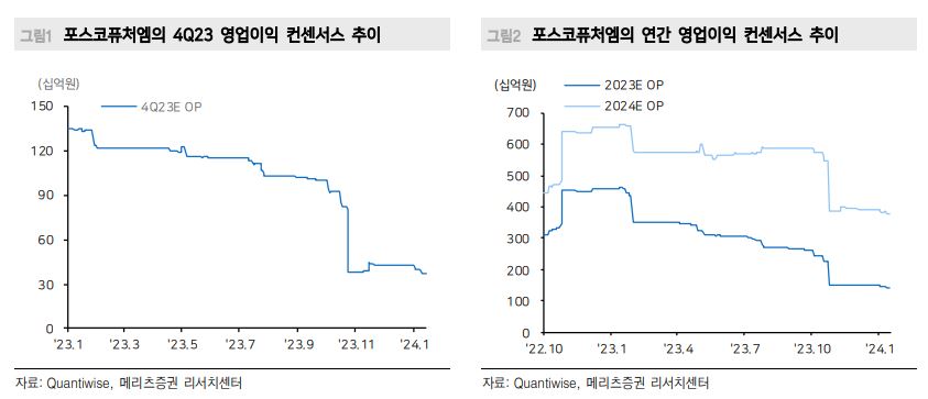 메리츠증권이 포스코퓨처엠에 대해 4분기 실적이 시장 전망치를 밑돌 것으로 전망했다. 투자의견은 ‘중립’ 유지, 목표주가는 기존 39만 원에서 35만 원으로 하향 조정했다. 전 거래일 기준 종가는 28만8500원이다.