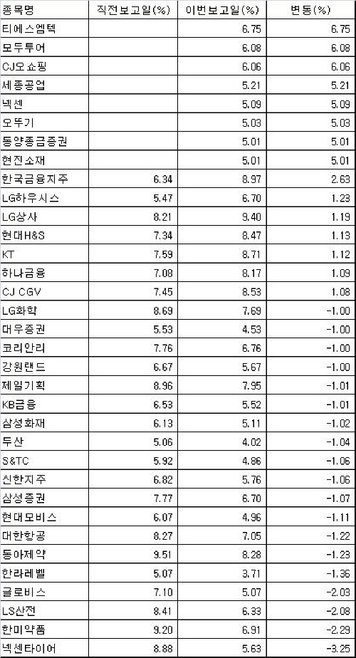 또한 국민연금은 한국금융지주(2.63%p),LG하우시스(1.23%p), LG상사(1.19%p), 현대H&S(1.13%p), KT(1.13%p), 하나금융지주(1.09%p) 등을 추가 매입했다.