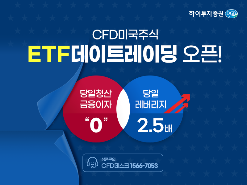 하이투자증권 관계자는 “본 서비스는 별도의 금융 이자 없이 레버리지를 활용해 ETF를 매매할 수 있는 매력적인 투자 수단”이라며 “앞으로도 다양한 CFD 거래환경 구축에 힘써 경쟁력 있는 서비스를 제공할 것”이라고 밝혔다.