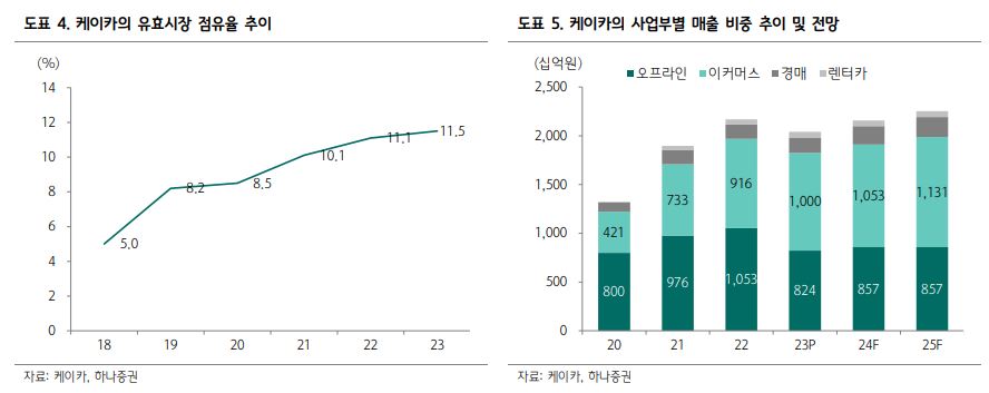그는 “중고차 시장 내 케이카와 같은 사업자 침투율이 상승 중”이라며 “이커머스와 위탁경매 매출의 확대를 기반으로 올해 실적이 턴어라운드할 것”이라고 전망했다.