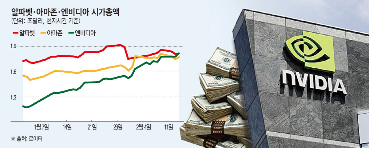 엔비디아는 전날 종가 기준으로 2002년 이후 약 20년 만에 처음으로 아마존 시총을 넘어선 데 이어 이날 알파벳까지 추월한 것이다.