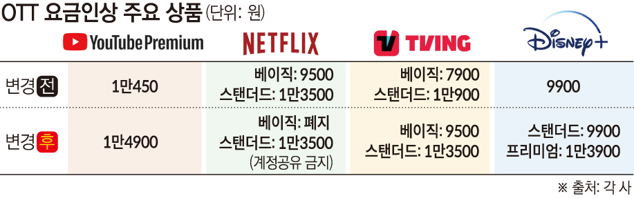 정부, 티빙, 웨이브, 왓챠, 넷플릭스, 디즈니 등 5곳 불러 요금 부담 완화 방안 논의