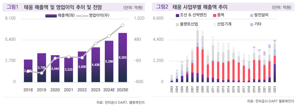 그는 “태웅은 2차 사이클 당시 2007년 조선향으로 연간 매출 1000억 원 이상을 시현한 이력이 있다”며 “2022년 조선 매출 504억 원으로 실적을 회복하기 시작했으며 지난해부터 수익성 높은 물량을 수주 중인 것으로 파악된다”고 했다. 실제 태웅은 삼성중공업과 350억 원 규모 장기 계약을 체결한 것으로 알려졌다.