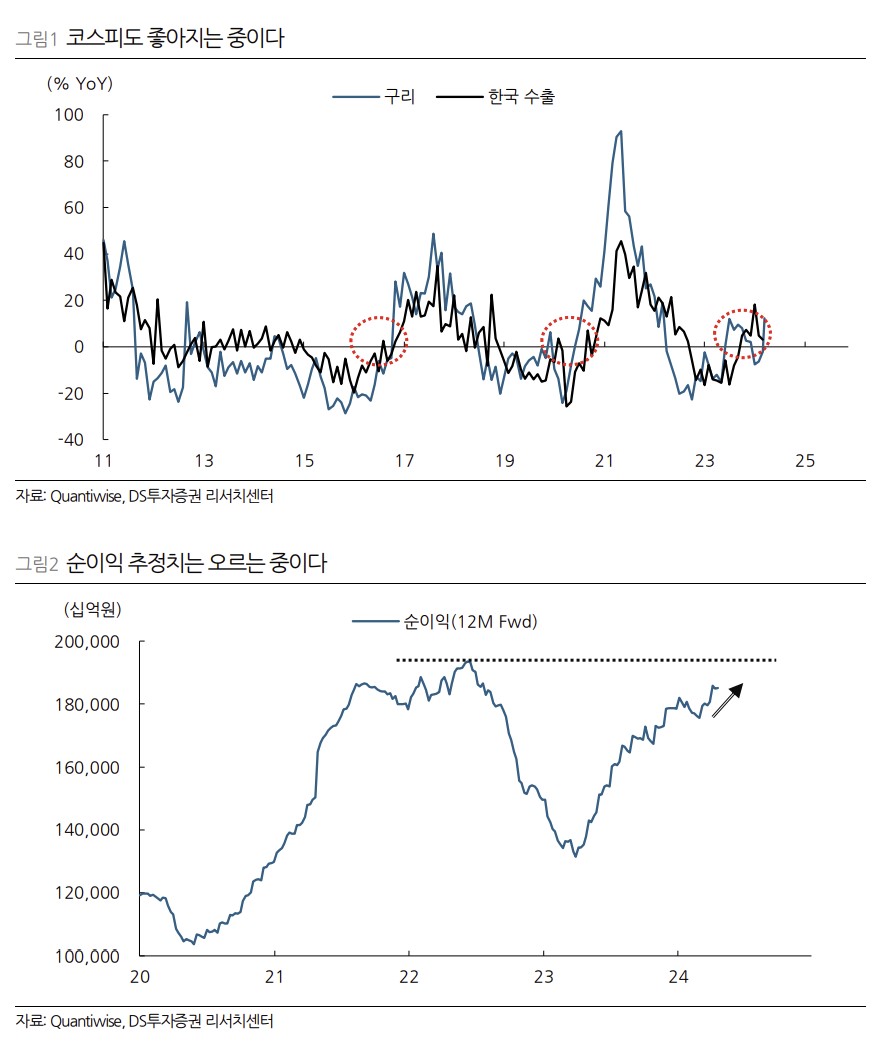 이어 "매출은 성장했고 비용은 적절히 안정을 찾아가고 있다. 이익 레버리지 효과가 나타나고 하반기로 가면서 이익 성장은 더 뚜렷할 것"이라며 "글로벌 경기를 선행하는 한국수출과 구리 가격만 보더라도 회복의 초입에 있다. 이익 성장이 눈에 들어오면 금리 인하 지연은 문제가 되지 않을 것"이라고 짚었다.