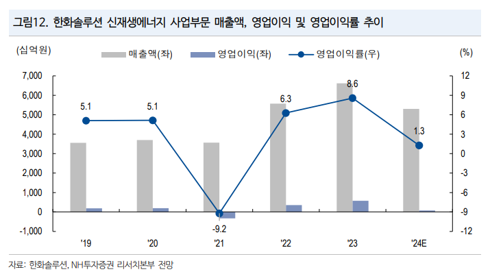 이 연구원은 “한화솔루션의 중장기 성장 전략 방향성 긍정적으로 판단한다”면서도 “현재 실적이 발생하고 있는 다운스트림(발전사업 매각, EPC 등) 사업을 제외하면 당장의 실적 개선 가시성은 낮다”고 했다.