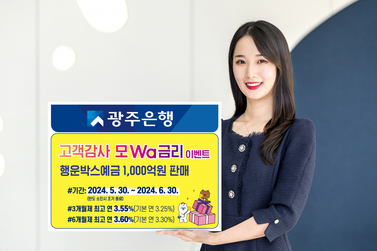 광주은행이 '행운박스예금' 상품 가입자를 대상으로 특별 우대금리를 제공하는 '고객 감사 모와(Wa)금리 이벤트'를 실시한다고 5일 밝혔다.