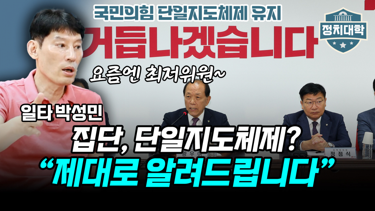 '정치 일타강사' 박성민 컨설턴트는 여당의 결정에 아쉬움을 드러냅니다. 여당이 살아남으려면 황우여 비대위원장이 제안한 집단지도체제로 가야 한다는 주장입니다. 고품격 정치 강의 '정치대학'에서 그 이유를 알려드립니다.
