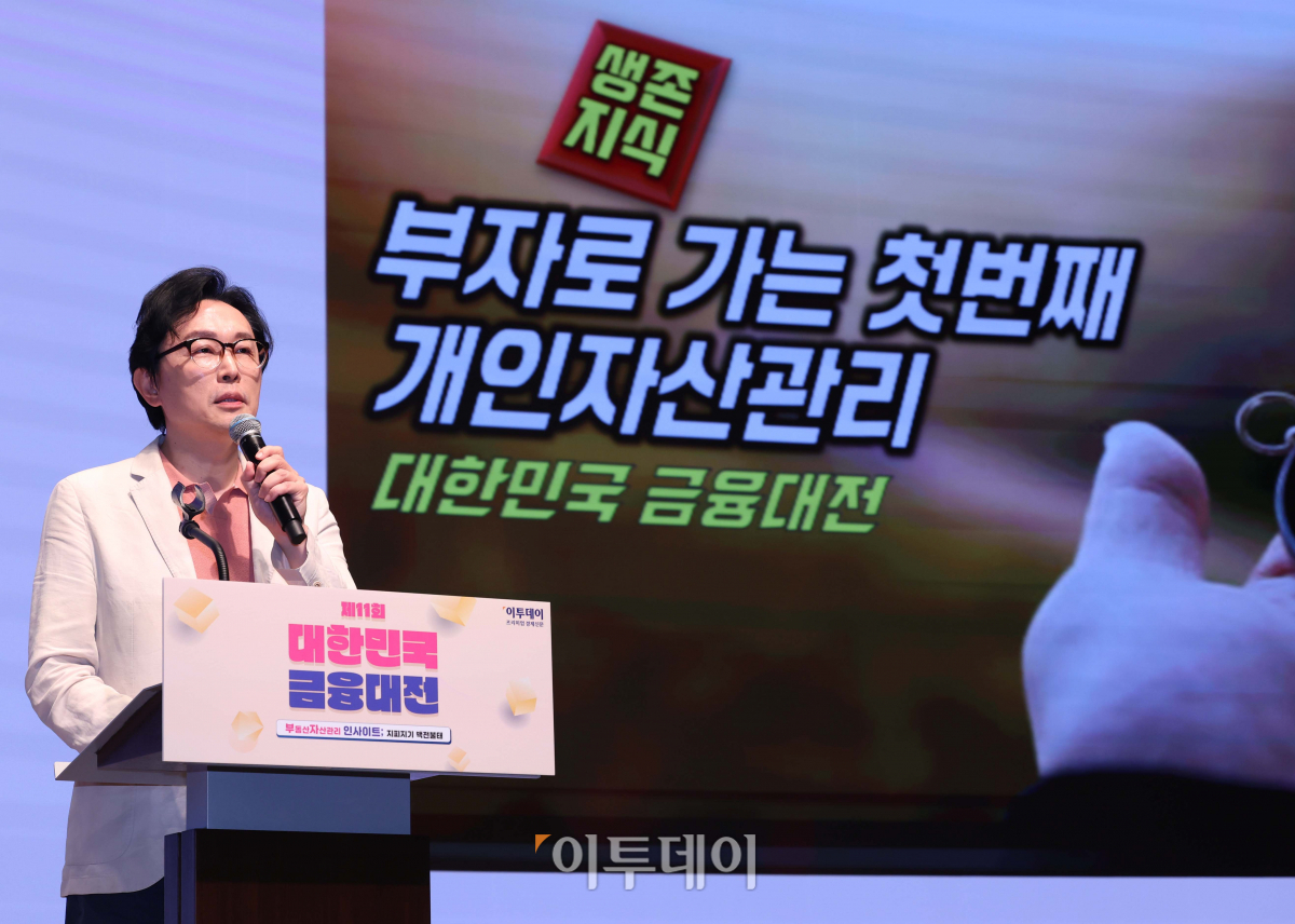 김경필 머니트레이닝랩 대표가 13일 서울 중구 대한상공회의소에서 열린 제11회 대한민국 금융대전에서 ‘부자가 되는 첫걸음’을 주제로 발표하고 있다. 이투데이가 '부동산 자산관리 인사이트; 지피지기 백전불태'를 주제로 개최한 대한민국 금융대전은 급변하는 환경 속에서 다양한 금융지식과 전략적인 투자방법을 모색함으로써 개인 금융자산관리의 역량을 향상하고 미래를 더욱 안정적으로 대비할 기회를 제공하는 자리다.