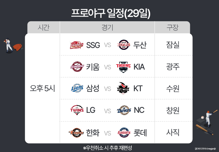 '2024 KBO 프로야구' 오늘(29일)의 경기 일정