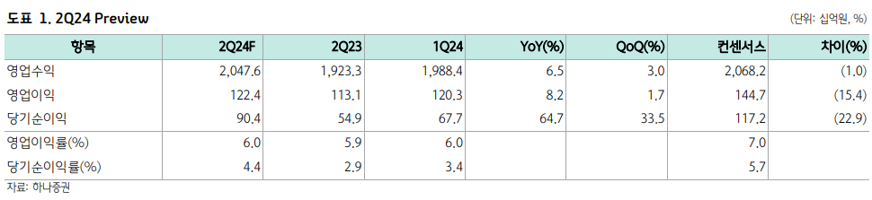 9일 이준호 하나증권 연구원은 “카카오는 2분기 연결 기준 영업수익 2조476억 원, 영업이익 1224억 원으로 컨센서스를 하회하는 실적을 기록할 전망”이라며 “카카오톡 본업은 견조한 성장을 보였으나 일본 내 웹툰 플랫폼 경쟁 심화로 픽코마마케팅 비용 증가, 에스엠엔터테인먼트와 카카오게임즈를 포함한 자회사의 부진이 기인했다”고 했다.