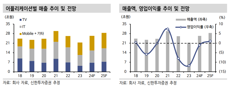 12일 남궁현 신한투자증권 연구원은 “정보기술(IT) 유기발광다이오드(OLED), 모바일 OLED 생상능력(Capa) 증설, OLED TV 출하량 증가 등 체질 개선 노력이 가시화되며 올해 영업손실이 축소될 것”이라며 “내년 영업이익 흑자전환이 가능할 전망”이라고 했다.