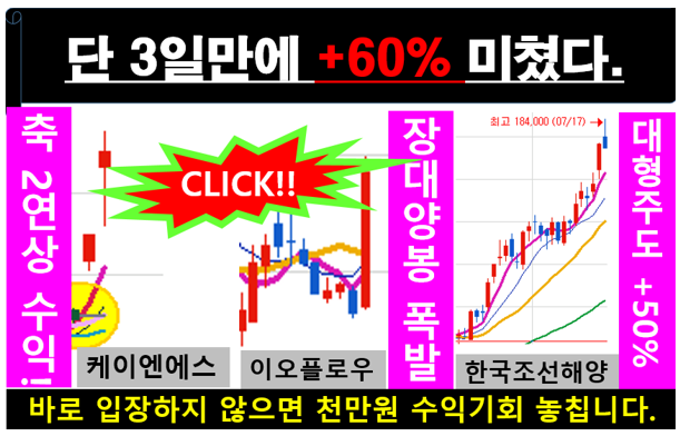 어떻게 찍으면 상한가에 들어가고, 상한가 안 가더라도 보통 +20%이상 상승할 수가 있을까요? 30년 주식내공이 설명해줍니다. 업계에서도 누구도 따라올 자 없다는 전문가가 무료로 실제 수익 내는 것을 직접 보여 줍니다.