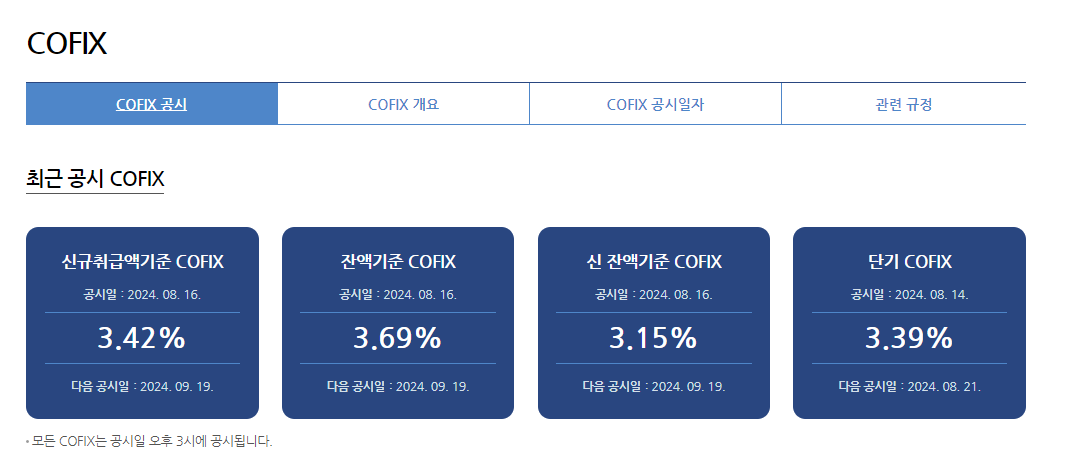 신규취급액 기준 코픽스는 해당 월 중 신규로 조달한 자금을 대상으로 산출돼 상대적으로 시장금리 변동이 신속히 반영되는 반면, 잔액 기준 코픽스와 신 잔액 기준 코픽스는 시장금리 변동이 서서히 반영된다. 잔액 기준 코픽스는 7월 3.69%로 전월 대비 0.04%p 하락했다. 신 잔액 기준 코픽스는 같은 기간 3.15%로 0.02%p 낮아졌다.