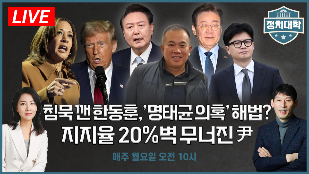 이 밖에 역대 최저치를 찍은 윤석열 대통령 지지율을 끌어올릴 묘수와 미국 대선 결과가 한국 정세에 미칠 영향들도 분석합니다.