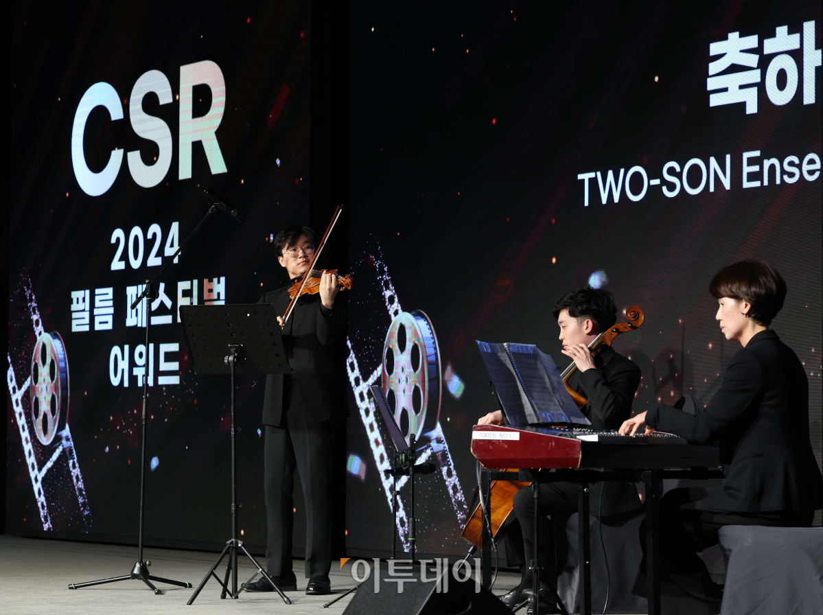 21일 서울 여의도 중소기업중앙회에서 열린 '2024 CSR 필름 페스티벌 어워드’에서 투 손 앙상블이 축하공연을 하고 있다. 경제신문 이투데이가 주최한 이 행사는 한 해 동안 사회적 가치 창출을 위한 CSR 활동 발자취를 공모하고 그 업적을 격려하기 위해 마련된 자리로 2012년 첫걸음을 내디뎌 올해로 13회째를 맞이했다.