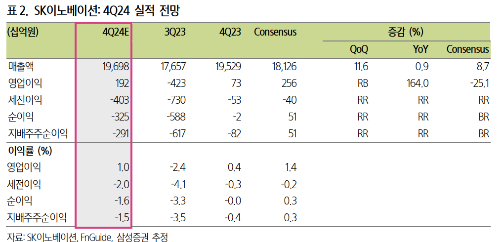 3일 조현렬 삼성증권 연구원은 “지난해 4분기 영업이익은 1917억 원을 예상한다”며 “11월부터 SK E&S 합병 효과가 반영돼 1211억 원의 이익 기여가 예상되지만, 배터리 적자 전환과 배터리 소재 적자 확대로 일부 상쇄될 전망”이라고 했다.