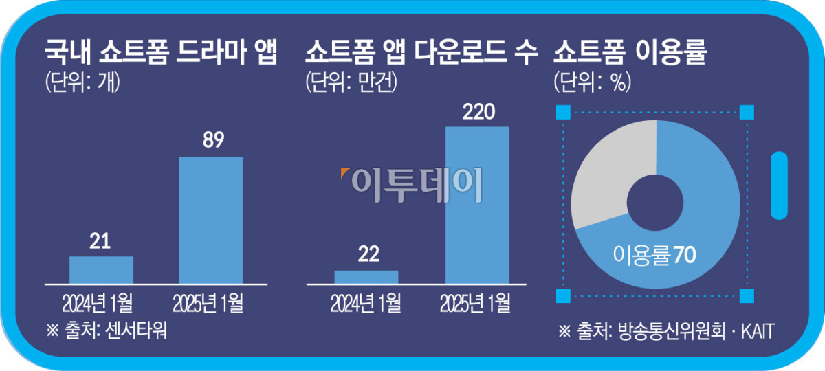 전 세계적으로 쇼트폼 콘텐츠가 대세로 떠오르는 가운데 5분 내외의 짧은 형식의 드라마를 제공하는 애플리케이션(앱)이 국내에서 급성장하며 콘텐츠 시장을 위협하고 있다. 중국발 쇼트폼 드라마 앱이 시장의 판도를 흔들자 국내 사업자들도 앞다퉈 쇼트폼 시장 진출에 나서고 있다.