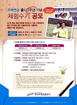 주택금융공사는 주택연금 출시 2주년을 기념해 이용자와 가족을 대상으로 다음달 3일부터 체험수기를 공모한다.