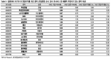 이 때문에 새로운 저평가 기준을 찾기 위한 방법이 모색되고 있는 가운데 PSR이 증권가에 새로운 관심을 받고 있는 것이다.
