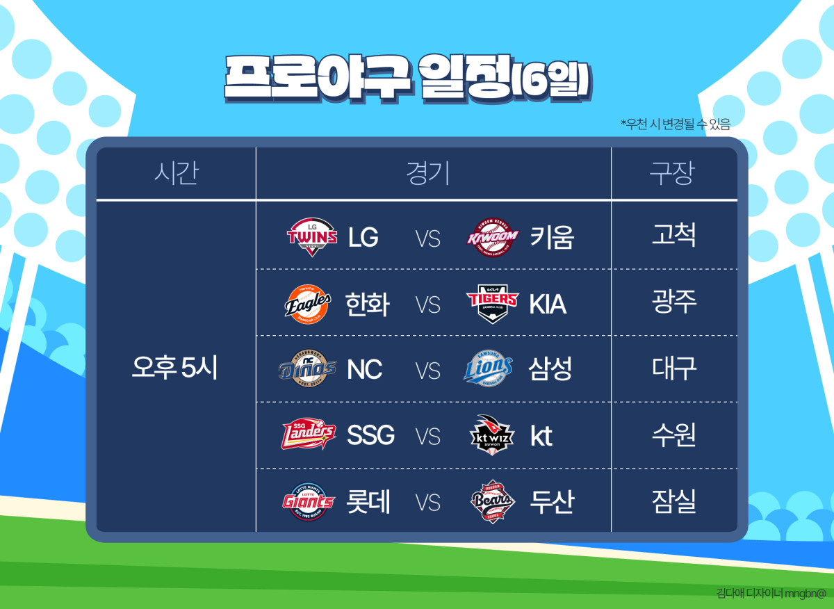 △6월 6일 프로야구 경기 일정