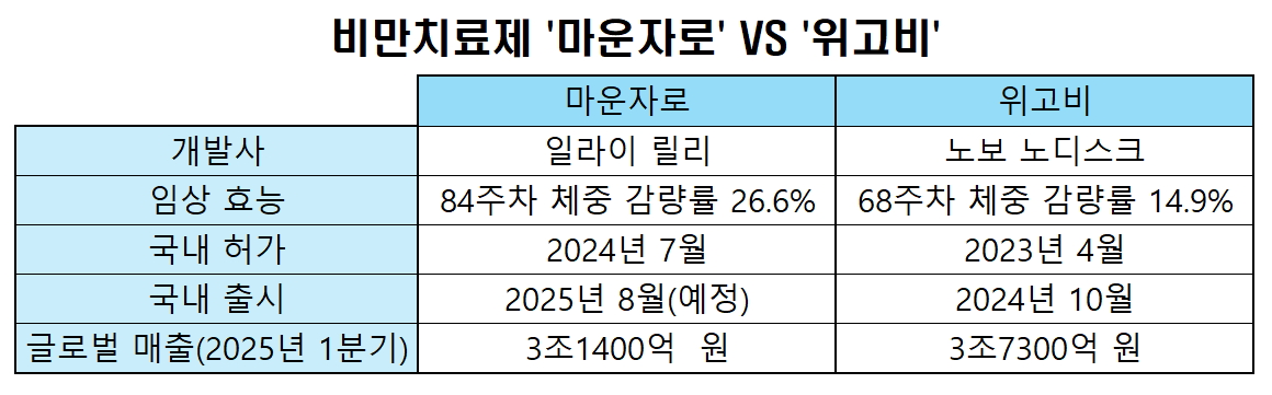 ‘꿈의 비만약’으로 불리는 일라이 릴리의 ‘마운자로’(성분명 티르제파타이드)가 8월 중순 국내에 공식 출시된다. 업계는 마운자로가 기존 국내 비만치료제 시장을 사실상 독점해온 ‘위고비’와 정면 대결에 나서며 시장 판도를 뒤흔들 것으로 보고 있다.