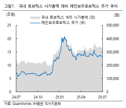 이상수 iM증권 연구원은 "선진 시장 내 협동로봇 수요는 러-우 전쟁 이후 장기화하고 있는 유럽 경기 둔화 및 대미 관세에 따른 고객사의 투자 집행 일정 연기 등에 기인해 좀처럼 유의미한 성장세를 보여주지 못하고 있다"며 "이는 하반기 내 해소될 가능성이 작아 보이고, 그룹사를 중심으로 한 캡티브 물량의 규모에 따라 제한적인 실적 개선이 가능할 것"이라고 판단했다.