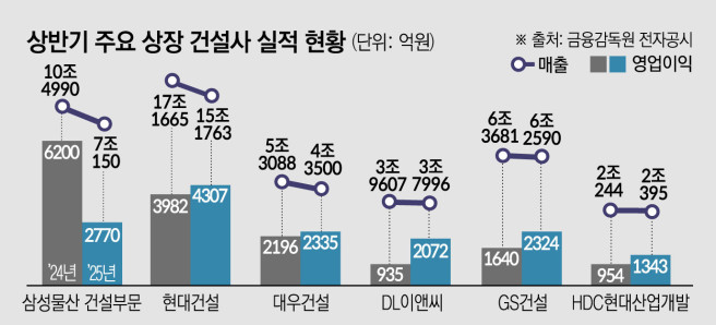 올해 상반기 국내 주요 대형 건설사들이 매출 축소를 피하지 못한 가운데 수익성에서는 희비가 엇갈렸다. 외형 확대보다는 수익성·위험 관리에 집중한 곳이 뚜렷한 회복세를 보였다.