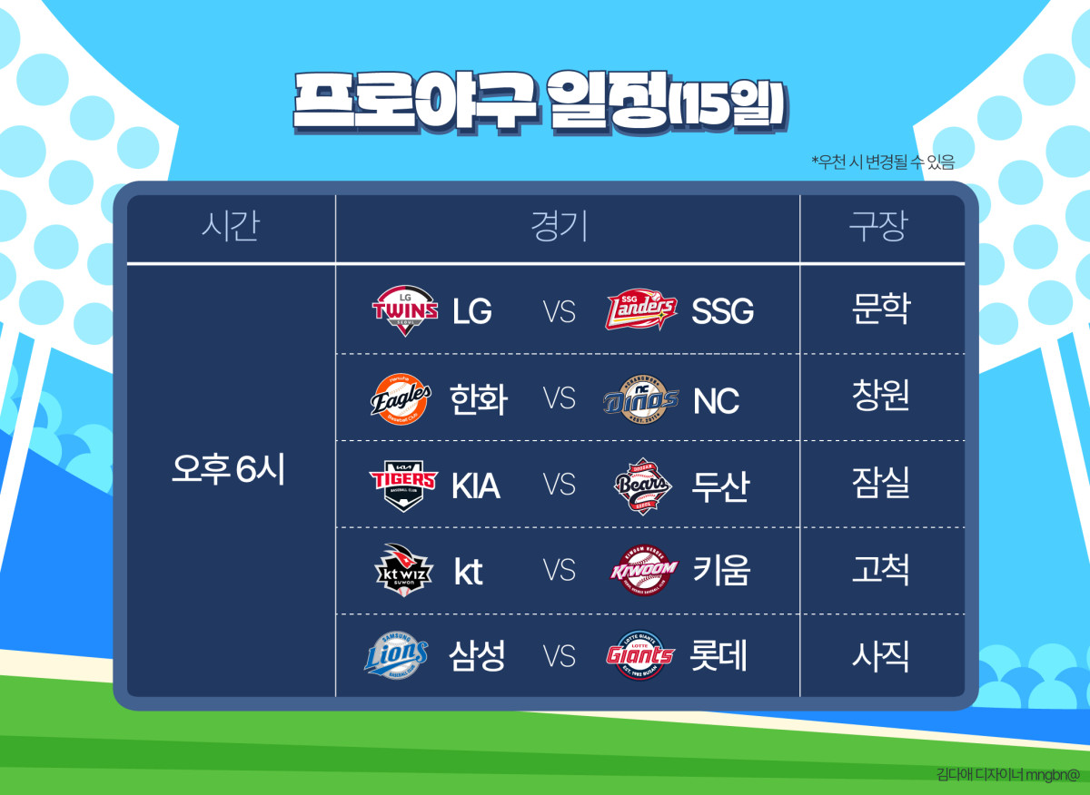 '2025 KBO 프로야구' 오늘(15일)의 경기 일정