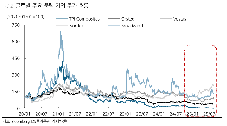 안주원 DS투자증권 연구원은 "미국 태양광·풍력 등 재생에너지 보조금 규제가 확정됐다"며 "정책 리스크가 완전히 해소되면서 글로벌 태양광·풍력 기업들의 주가도 상승 중"이라고 진단했다.
