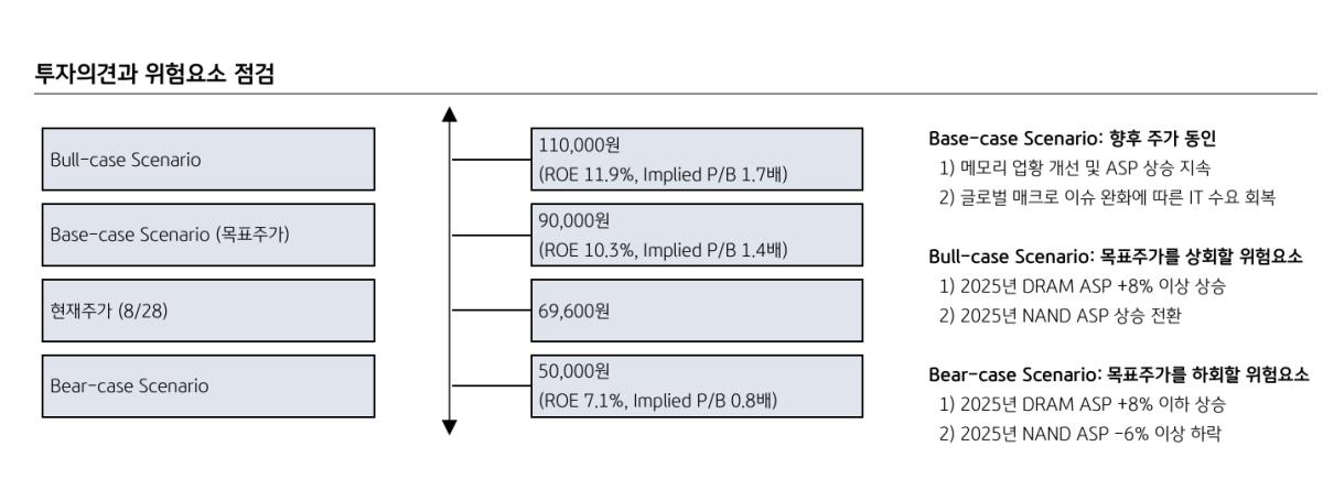 삼성전자 분기 영업이익은 2분기 4조7000억 원을 저점으로 3분기 8조8000억 원(전분기 대비 +88%), 4분기 9조2000억 원으로 개선될 전망이다. 하반기 반도체(DS) 영업이익은 8조8000억 원으로 전년 대비 31% 증가하고 상반기 대비 491% 급증해 전체 영업이익은 18조 원으로 4년 만에 최대치를 기록할 것으로 예상했다.