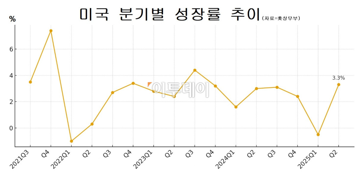 미국의 2분기 국내총생산(GDP)이 3.3% 증가한 것으로 잠정 집계됐다. 증가세는 직전분기 대비 연이율 변동 추이다.