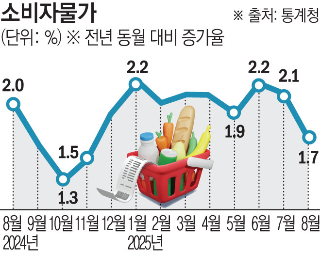 다만 통신요금 할인은 일시적 물가 하락 요인이고 먹거리 가격은 계속 치솟고 있어 물가에 대한 부담은 여전하다. 7월 말 지급을 시작한 민생회복 소비쿠폰도 먹거리 물가 상승세를 자극하는 요인 중 하나다.
