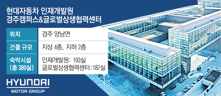 인재개발연수원과 글로벌상생협력센터는 지상 4층, 지하 2층 규모다. 경주인재개발연수원은 193실, 글로벌상생협력센터는 187실 등 총 380실의 숙박시설과 강의실, 식당 등을 갖추고 있다.