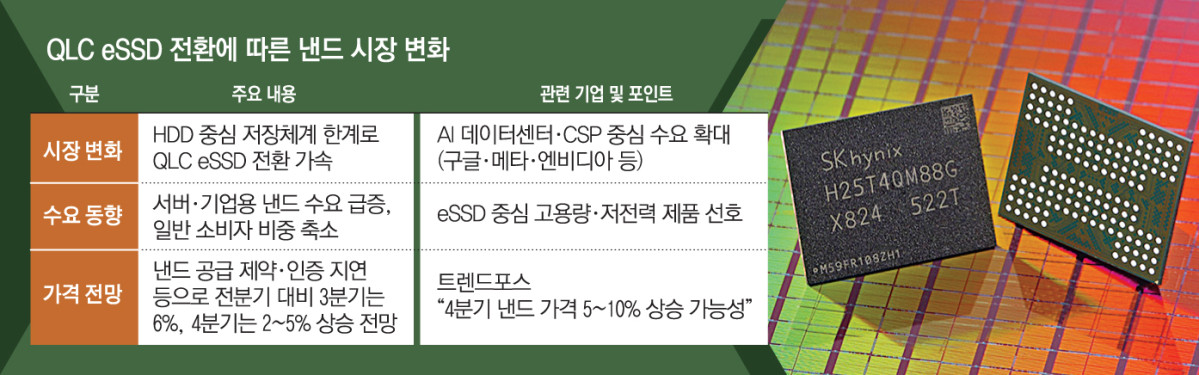 특히 HDD를 대체할 저장 장치로 QLC eSSD가 부상하면서 낸드 시장의 구조가 빠르게 재편되는 추세다.