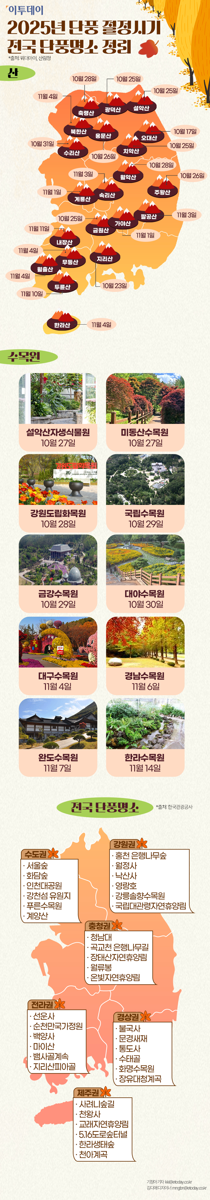 2025년 단풍 절정시기·전국 단풍명소 정리 [그래픽 스토리]