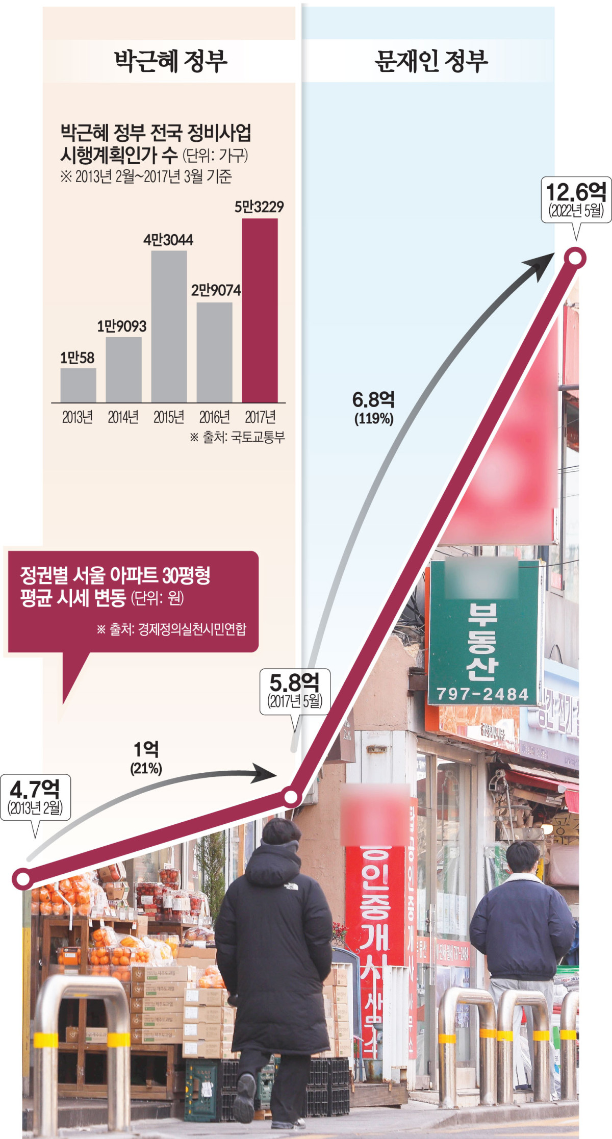 박근혜 정부는 침체된 부동산 시장을 살리기 위해 규제를 풀었지만 그 부양책은 정비사업과 민간 임대시장의 과열로 이어졌다. 재건축 규제 완화와 뉴스테이 도입으로 민간 중심의 시장이 확대됐고 결국 임기 말 정부는 과열된 시장을 진정시키기 위해 다시 규제의 고삐를 죄어야 했다.