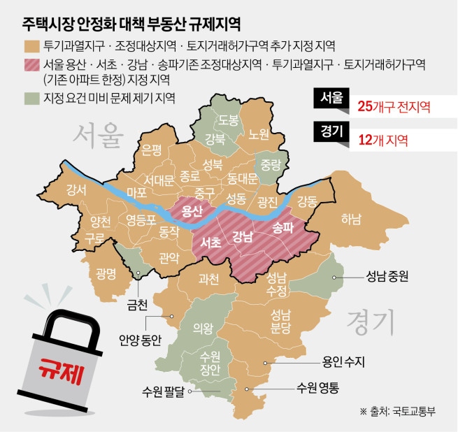 정부가 '10·15 부동산 대책'을 통해 서울과 수도권 일부 지역을 규제지역으로 지정하는 과정에 문제가 있다는 지적이 제기됐다. 법률상 요건에 해당하지 않는 곳까지 광범위하게 포함됐다는 것이다. 이에 대해 국토교통부는 절차와 기준에 맞는 적법한 조치였다며 정면으로 반박하고 있다.