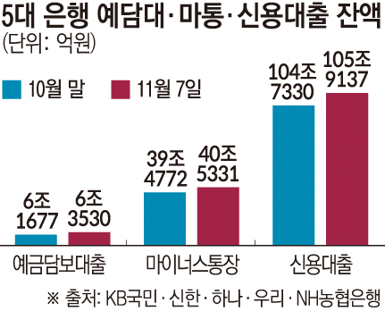 은행 예금담보대출도 6조3530억 원⋯1853억 원↑